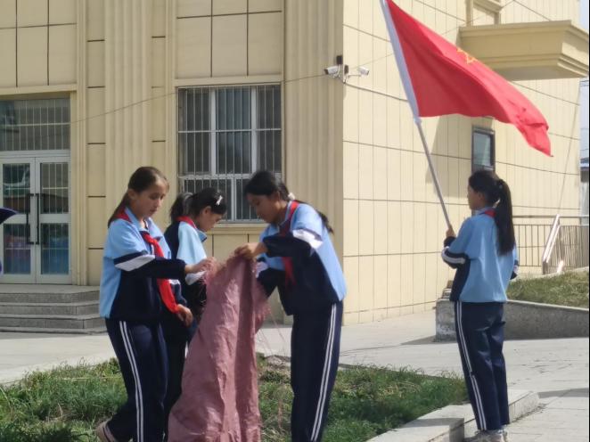 为了促进青少年关爱自然环境、守护绿水蓝天的环保意识,增强他们的社会责任感和使命感,近日,呼和托哈种畜场中心小学的爱心志愿的师生们在呼和托哈队,身穿‘浅蓝校服’戴手套、收纳垃圾袋,在老师的带领下,进出呼和托哈队广场,开展“小小环卫工 、大大责任心”社会实践志愿服务活动,他们沿着广场附近巷道,一边徒步、一边清洁草丛、绿化带,捡拾垃圾。