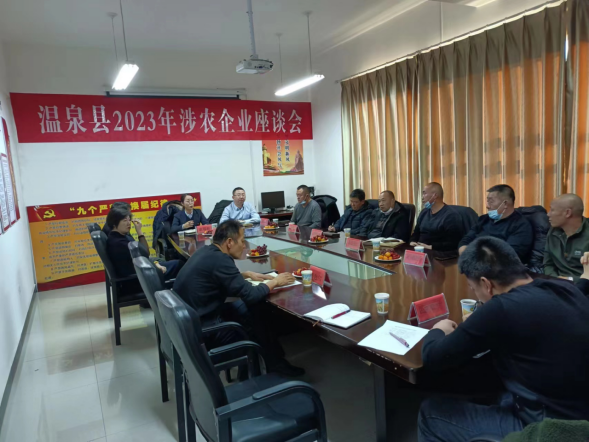 1月18日,温泉县农业农村局召开涉农企业座谈会,了解近年来全县涉农企业运行情况、存在的突出问题和意见建议,并就营销策略、市场行情、品牌整合、市场开拓等方面进行了深度交流。