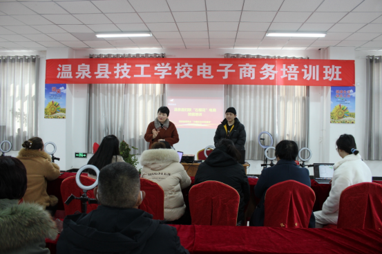 为进一步挖掘温泉县农村电商发展潜力,充分利用网络等新媒体优势,扩大农村电商覆盖面,进一步培养、孵化和遴选电子商务综合复合型人才,培养本地电商领头人物,温泉县技工学校联合温泉县惠农供销社电子商务有限公司在塔秀乡胜旺食品有限公司举办了为期20天的“直播+农产品”电子商务技能培训班。