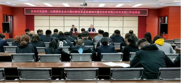 根据州党委关于巡察工作的统一部署,近日,州党委第二巡察组温泉县分组巡察县泉都城市建设投资有限公司党支部工作动员会召开。会前,州党委第二巡察温泉县分组组长杜仁桑主持召开与县泉都城市建设投资有限公司领导及班子成员的见面沟通会,通报了有关工作安排;县泉都城市建设投资有限公司总经理向巡察组介绍了公司的职能责任、工作开展情况、目前存在的问题和下一步计划。会上,杜仁桑组长作了动员讲话,对做好巡察工作提出要求。张洪涛总经理主持会议并作表态发言。