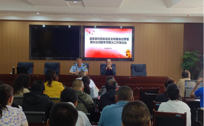 为深入开展教育系统食品安全和营养膳食专项整治工作,解决校园食品安全管理、营养膳食补助、学生餐费资金管理等方面存在的问题。温泉县市场监督管理局联合教育局召开校园食品安全和膳食经费管理突出问题专项整治工作培训会。各中小学(幼儿园)校长(园长),食品总监、食品安全员、食堂从业人员70余人参加会议。