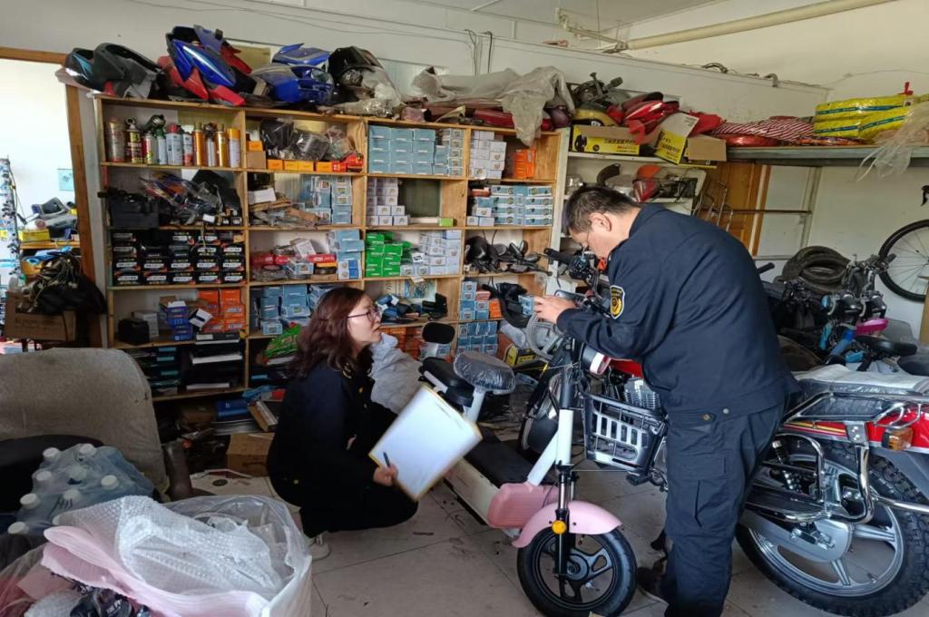 这次检查的重点是拼装、改装、加装检查。执法人员采取一查询、二比对、三判断查验的方法,对县域内15家电动自行经营单位开展了全覆盖执法检查。检查了电动自行车电池、充电器、车架结构等关键部位不符合国家标准的突出问题,确保产品质量符合要求,并查看经营户销售台账、落实“日管控、周排查、月调度”机制情况,严厉查处销售非法改装、拼装电动自行车的违法违规行为,督促电动车经营者落实主体责任,确保产品质量安全。对1家涉嫌未落实管控机制的销售户进行了现场快查快办。