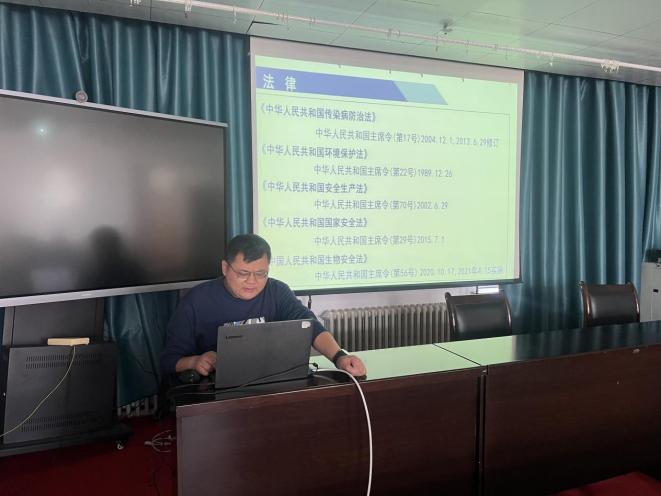 四、进行理论测试,巩固学习成果。为全面检验培训效果,活动最后组织了生物安全理论知识闭卷测试。测试内容覆盖法律法规、操作规范、应急处置等核心知识点。全体参训人员认真作答,成绩优良,达到了以考促学、以学促用的目的。