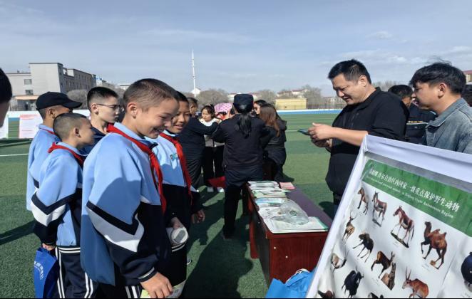 活动以“珍稀动物卡片认知”互动游戏为核心亮点,精选温泉县境内马鹿、雪豹、金雕等国家重点保护野生动物,制作成图文并茂的知识宣传卡。参与者随机抽取卡片,准确答出对应野生动物名称及保护级别,即可获得“野生动物保护小卫士”纪念徽章与《温泉县野生动植物保护法规手册》,让原本枯燥的法条学习转化为趣味互动体验,真正实现“在玩中学、在学中懂”,充分调动了现场学生的参与积极性。