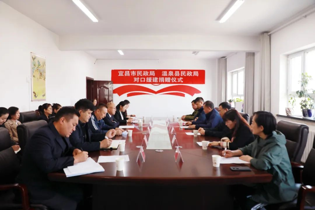 在随后举行的捐赠仪式上,湖北省宜昌市民政局向温泉县民政局捐赠了30万元援建资金。