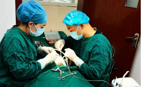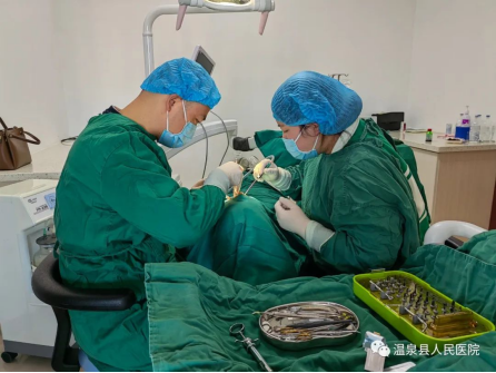 宜昌市中心人民医院口腔科徐翔医师正进行种植牙手术