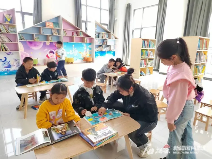 温泉县图书馆里阅读的孩子。温泉县图书馆供图