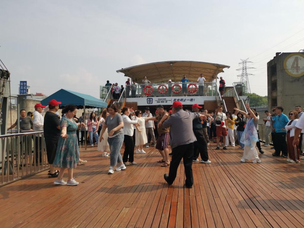 5月24日上午,考察团一行乘坐三峡游轮领略了长江西陵峡秀美风光,了解“万里长江第一坝”葛洲坝的里程碑式历史。在游轮甲板上,在欢快的“萨吾尔登”、跳跃的“黑走马”、协调的麦西来甫的音乐中,考察团成员与各族游客一同载歌载舞、“以舞会友”。