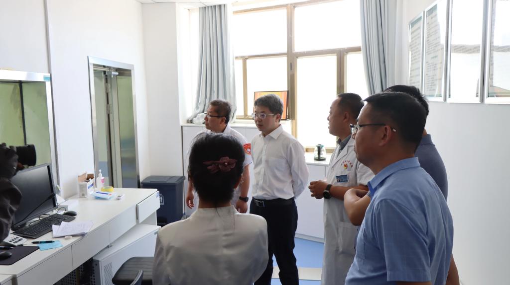 揭牌仪式结束后,咸宁市中心医院“组团式”援疆医疗团队一行参观了温泉县分院介入诊疗中心、血液透析室、门诊以及住院部病房等区域,详细了解了分院目前的医疗运营情况以及设施配备情况。
