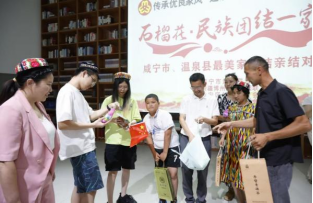 7月21日上午,宜昌屈原书城书香氤氲,情意融融。作为宜昌市民族团结进步示范基地和家风家教实践基地,这里举行了一场跨越千里的亲情之约——“石榴花·民族团结一家亲”最美家庭结亲结对交流活动。来自温泉、宜昌的7户“最美家庭”代表、宜昌市妇联、宜昌市民宗委、温泉县妇联、西陵区、秭归县等相关部门负责人等近50人参加活动。