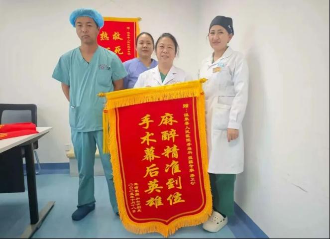 帮扶期间,廖卫宁主任深度参与临床一线工作,累计指导完成手术麻醉178台,涵盖全身麻醉、椎管内麻醉及神经阻滞等多种方式。其中,全身麻醉74例,腰硬联合麻醉32例,超声引导下臂丛神经阻滞17例,麻醉技术实现多样化发展。针对高龄及危重症患者,廖主任主导优化麻醉方案,成功为9例80岁以上高龄患者及15例ASA分级3级以上(中高危风险)患者实施麻醉,参与指导急危重症患者抢救2例,均取得良好临床效果。凭借精湛的医术和贴心的服务,廖卫宁主任还收到患者赠送的锦旗1面,赢得广泛赞誉。