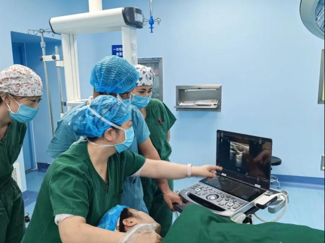 为提升麻醉精准度与安全性,廖卫宁主任积极推动超声技术在麻醉领域的应用。她带领手麻科医护团队先后开展超声引导下神经阻滞、超声引导下动静脉穿刺等新技术,实现了手术区域的精准定位和麻醉范围的有效控制。相较于传统操作方式,超声引导技术显著减少了穿刺次数,降低了神经损伤、血肿等并发症风险,为患者提供了可靠解决方案。这些新技术的开展,不仅填补了医院多项技术空白,更推动了麻醉科向“可视化、精准化”方向发展。