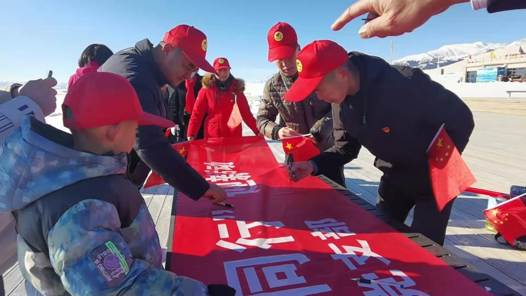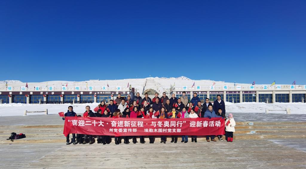 1月22日,和风日丽,万里晴空,博州党委宣传部党员干部和埃勒木图村党员群众共计40余人,在赛里木湖旅游风景区共同开展“喜迎二十大·奋进新征程·与冬奥同行”主题党日和民族团结联谊活动,有效提升“访惠聚”派驻单位和村队的凝聚力。