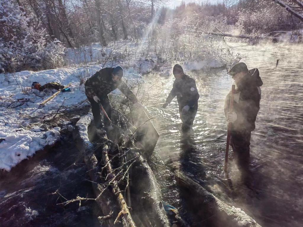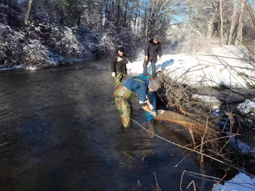 近期因降温降雪极端天气来袭,导致河谷林景区内部分水道因水面结冰水道拥堵,水流上翻,涌出水道,景区内部分路面漫水结冰。为保障景区正常运转,消除林区安全隐患,温泉县次生林管理站管护人员不畏寒冬刺骨的河水,除冰通水。通过分导上游水系,减少下游流量,沿线除冰保持水道畅通的方式逐步控制翻涌的河水。同时抓紧时间清除路面结冰及积雪,保持景区道路安全畅通,创造良好的景区环境,用实实在在的行动诠释林业管护人员的担当。