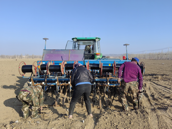 走进安格里格镇春小麦播种现场,播种机在地里来回穿梭,辛勤的群众在田地里来回奔忙。在技术人员的指导下,群众按照春小麦播种操作流程,将提前备好的小麦种子、化肥等一起放进播种机,伴随着机器的轰鸣声,一粒粒充满希望的种子随着播种机的上下翻动被播进土壤中,春小麦的播种和施肥将一次性完成。同时,随着小麦种子下地,滴灌带的铺设也同步完成。