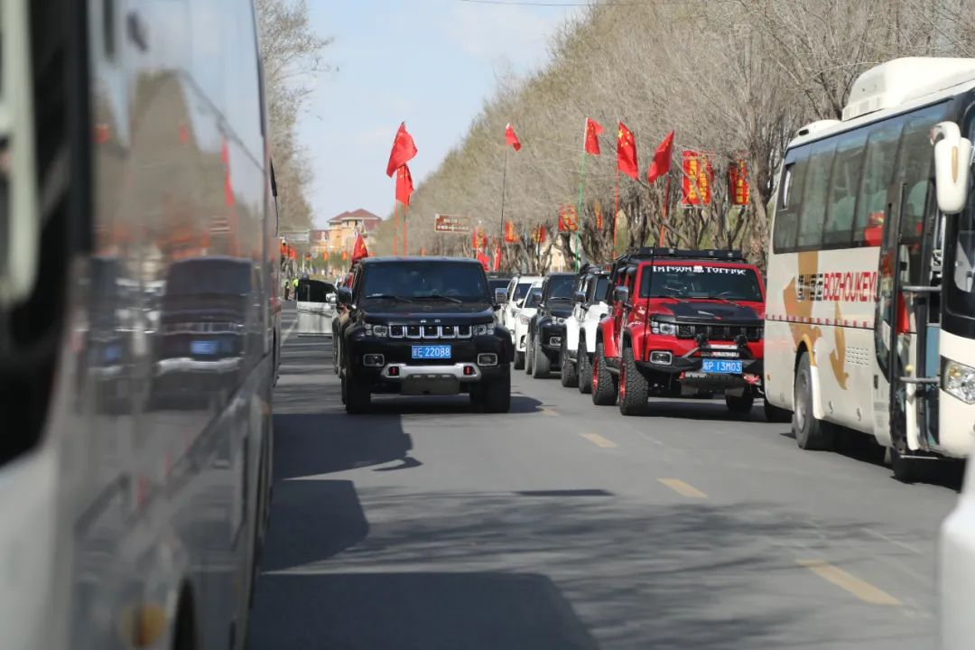 开幕式后,集结完毕、蓄势待发的旅行团、自驾车队从广场鸣笛启程,依次自驾来到博格达尔村,游客们用车轮丈量这片热土,用眼睛一览沿途风光,用心感受温泉县飞速发展的日新月异。