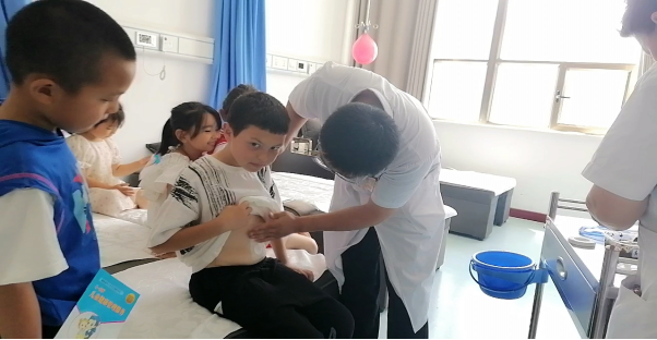 “没想到人体有这么多穴位,我觉得这太神了······。”温泉县人民医院的走廊里一群小萌娃不断传出惊奇的声音。