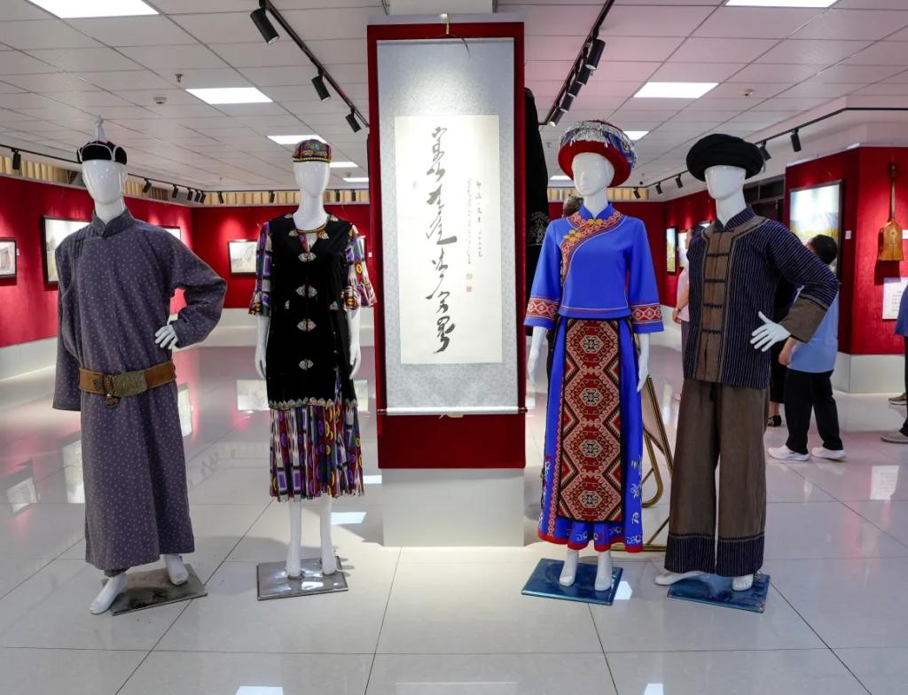 本次展览共展出百余件民族服饰、传统手工非遗珍品和美术书法精品。踏入展厅,仿佛置身于时空隧道。温泉县的蒙古族刺绣针法细腻,托布秀尔与马头琴的旋律交织,奏响草原的赞歌;长阳的土家族服饰色彩绚丽,南曲三弦琴声婉转,诉说着巴土风情。每一件展品都是民族文化的瑰宝,凝聚着匠人的心血与智慧,共同勾勒出中华民族多元一体文化的绚丽图景。
