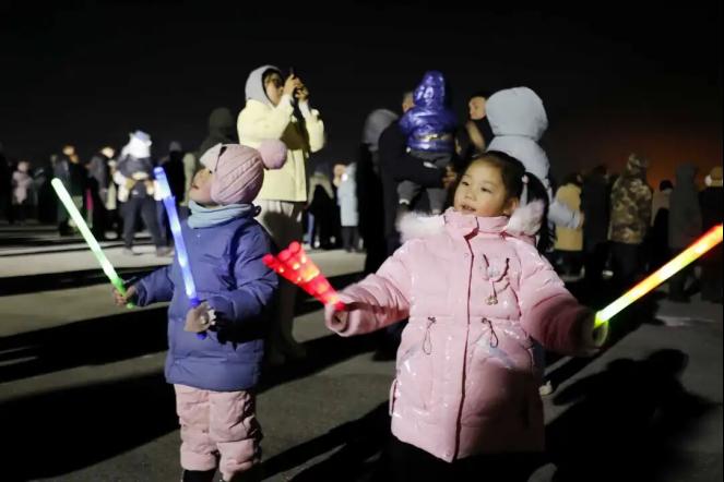 夜幕低垂,温泉县赛马场早已人头攒动、热闹非凡。居民扶老携幼、相约而至,满怀期盼地驻足等候,赛马场上暖意融融,处处洋溢着团圆美满、喜庆祥和的浓厚年味。众人翘首以盼,共同期待这场璀璨盛宴。