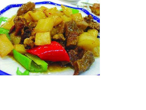 原料:温泉风干羊肉、猛进牌无公害马铃薯(获得了1999年昆明世界园艺博览会铜奖,中绿华夏有机食品认证证书)。特点:温泉土豆富含维生素A和多种矿物质,维生素C的含量为蔬菜之最;风干羊肉肉质纯美,滋补健体。