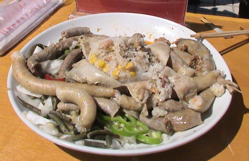 原料;羊杂、羊肉。特点:草原民族千百年来一种最喜爱的美食,是在婚嫁、庆寿、欢迎亲朋贵宾时的宴席美食。肥而不腻,营养价值高。