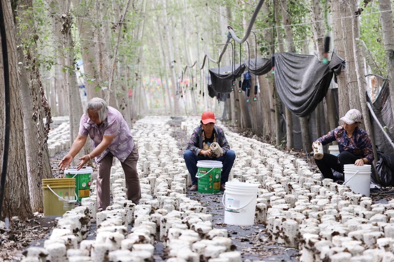 种植户宣艳鹏介绍道:“我们这里种植了赤松茸、雪莲菇、黑木耳、羊肚菌等,目前以黑木耳为主,现在正是丰收时节。我们的黑木耳全部采用绿色种植方式,产品打通了线上线下销售渠道,这不仅提升了市场认可度,也让我们的种植收益稳步增长。”