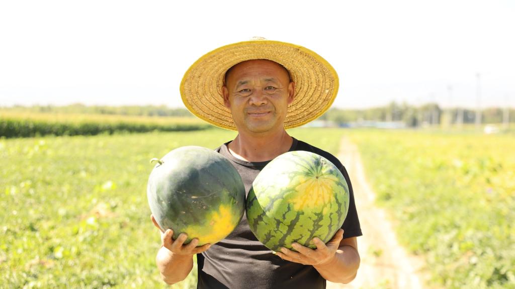 走进这片生机勃勃的瓜田,只见一个忙碌的身影正俯身在藤蔓间辛勤劳作,那是种植户王永平。他指尖轻巧地叩击着瓜皮,听着那声清脆的 “咚咚” 响。一旦确认无误,便迅速将西瓜采摘下来,装进筐中,再搬运到一旁。汗水顺着他的脸颊不断滑落,浸湿了衣衫,然而他脸上却始终挂着藏不住的笑意——这不仅是属于丰收时节的忙碌,更是带着满满甜意的喜悦,是对辛勤付出终获回报的满足。
