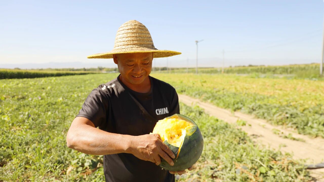 温泉县哈日布呼镇地处独特的地理位置,昼夜温差大、光照时间充足,得天独厚的气候条件为西瓜的生长提供了“好底子”;再加上如今普及的滴灌技术,科学精细的管理让西瓜的产量、甜度和口感都得到了显著提升。“欢迎全国各地的朋友们来我们瓜田逛逛,现摘现吃,保准让你尝到最新鲜、最甜美的滋味!”王永平热情洋溢地发出邀请,言语间充满了对自家西瓜的自信与骄傲。