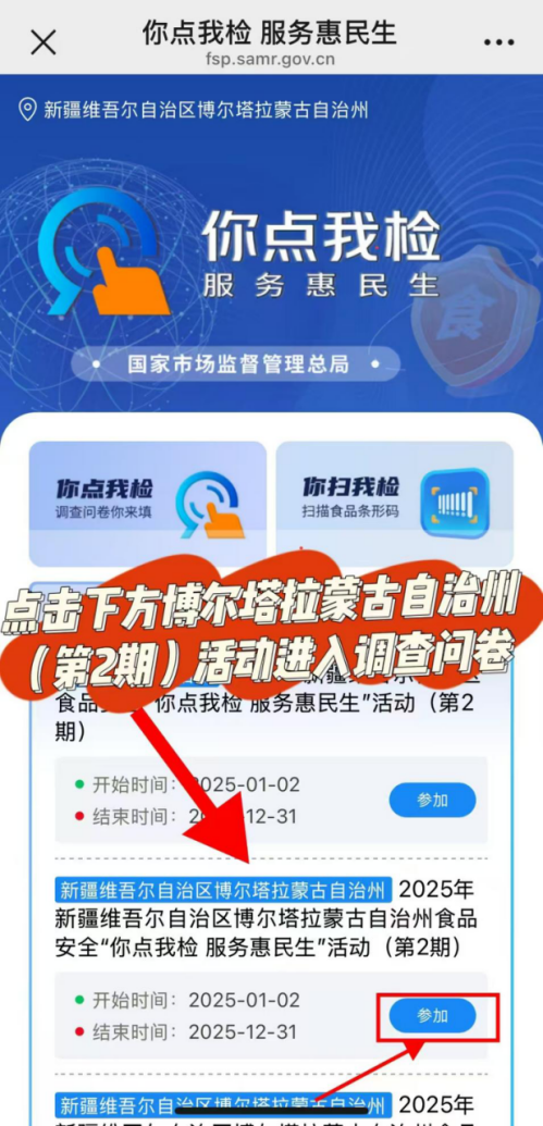 民以食为天,食以安为先。为了更好的服务于消费者,食品安全“你点我检 服务惠民生”活动第2期开始啦!现向社会公开征集广大群众和游客的意见,博州市场监督管理局将根据线上线下征集情况开展监督抽检,将抽检结果进行公示,切实回应人民群众对食品安全的关心与关注。
