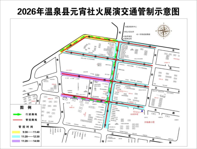 为保障2026年温泉县元宵节系列活动安全、有序进行,根据《中华人民共和国道路交通安全法》等相关规定,温泉县公安局决定于2026年3月3日(正月十五),对温泉县部分道路实施临时交通管制措施。具体事项通告如下: