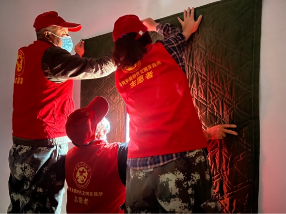 志愿活动中,塔秀乡新时代文明实践所根据居民实际需求,献关爱、办实事,用实际行动为居民群众送温暖、送关怀。为16栋居民楼共50个单元购买并安装上棉门帘。安装现场,志愿者有条不紊地钉钉子、挂门帘,逐栋把棉门帘安到单元门上。