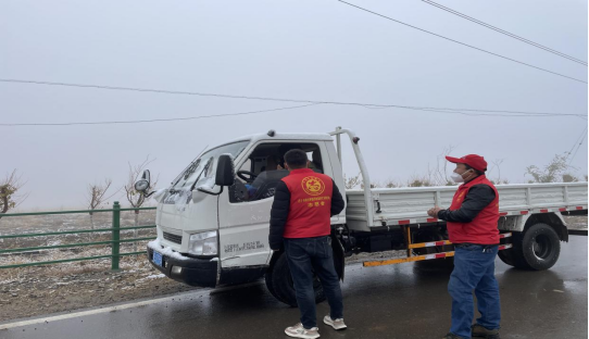 近日,受寒流影响,我县出现降雪大雾天气,针对极端天气,查干屯格乡呼斯塔村组织志愿者,对村队巷道三轮车、小轿车、大货车等车辆,查看是否换雪地胎,三轮车是否有贴反光贴,安全帽等,及时提醒村民安全驾驶开展道路交通安全教育宣传活动。
