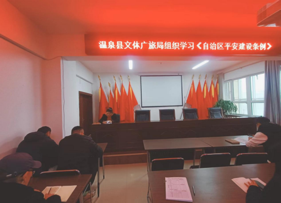 为进一步提高我局干部职工平安社会建设意识,营造共建共治共享的社会治理格局,维护社会长治久安,按照温泉县平安建设工作领导小组办公室工作安排,我局全体干部职工开展学习《新疆维吾尔自治区平安建设条例》。学习方式采取党组成员以上率下带头学、支部党员重点学、全体干部职工集中学习等多形式开展。