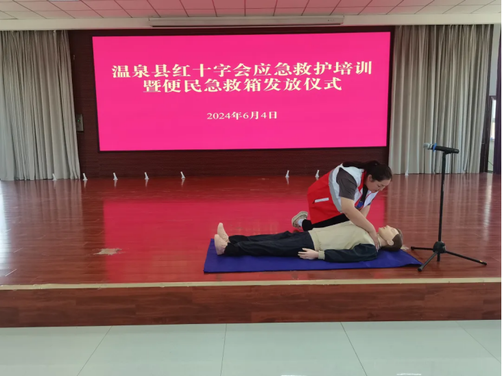 6月4日温泉县红十字会举办应急救护培训暨便民急救箱发放仪式进一步普及应急救护知识让更多的人掌握自救、互救本领