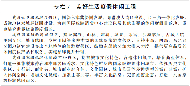 推动更多城市将旅游休闲作为城市基本功能,充分考虑游客和当地居民的旅游休闲需要,科学设计布局旅游休闲街区,合理规划建设环城市休闲度假带,推进绿道、骑行道、游憩道、郊野公园等建设,提升游客体验,为城乡居民“微度假”、“微旅游”创造条件。