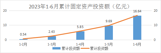 1—6月完成固定资产投资额16.4亿元,同比增长8%,增幅较1—5月回落8.4个百分点。6月当月完成固定资产投资66573万元。