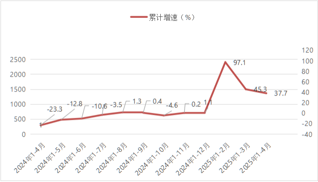 总体来看,2025年1-4月温泉县11家规模以上工业企业10家开工,开工率90.9%,累计完成规模以上工业增加值同比增长37.7%。4月当月完成规模以上工业增加值同比增长36.9%。