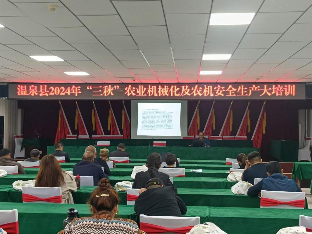 为充分发挥农业机械在“三秋”生产中的支撑作用,确保秋粮适时收获、秋种及时进行,9月11日-12日,温泉县农业农村机械化发展中心组织召开了温泉县“三秋”农机化工作暨安全生产培训班5期。各乡镇(场)农业服务中心站长、农机经销企业技术人员、农机大户等230人参加了此次培训,后续将继续开展培训,计划累计培训人数达到400人次。此次培训班邀请县农机推广站专业技术人员及部分企业授课人员授课,授课内容包括农机驾驶理论知识、农机安全生产、农机维修和保养知识、事故案例分析、北斗导航农业机械田间作业及喷杆式喷雾机操作要点等内容。发放《小麦机械化收获减损技术指导意见》、《温泉县农作物秸秆综合利用技术模式和操作规程手册》、《温泉县地膜科学回收治理指导宣传手册》等宣传资料共计600份。