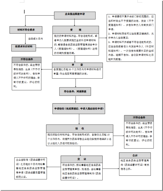 第十二条:开办药品零售企业,申办人应当向拟办企业所在地设区的市级药品监督管理机构或者省、自治区、直辖市人民政府药品监督管理部门直接设置的县级药品监督管理机构提出申请。受理申请的药品监督管理机构应当自收到申请之日起30个工作日内,依据国务院药品监督管理部门的规定,结合当地常住人口数量、地域、交通状况和实际需要进行审查,作出是否同意筹建的决定。申办人完成拟办企业筹建后,应当向原审批机构申请验收。原审批机构应当自收到申请之日起15个工作日内,依据《药品管理法》第十五条规定的开办条件组织验收;符合条件的,发给《药品经营许可证》。