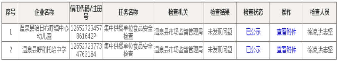 温泉县市场监督管理局关于集中供餐单位双随机检查结果公示