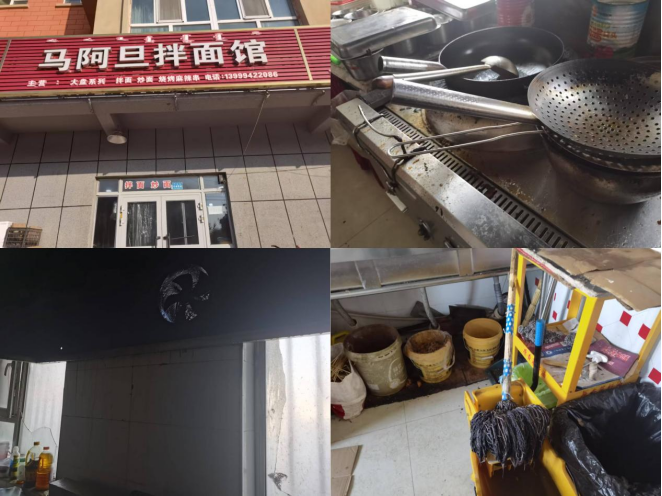 上榜理由:1、后厨卫生较差2、食材乱堆乱放;3、排风扇油污堆积严重;4、拖把破旧乌黑;5、垃圾未及时清理且垃圾桶无盖。