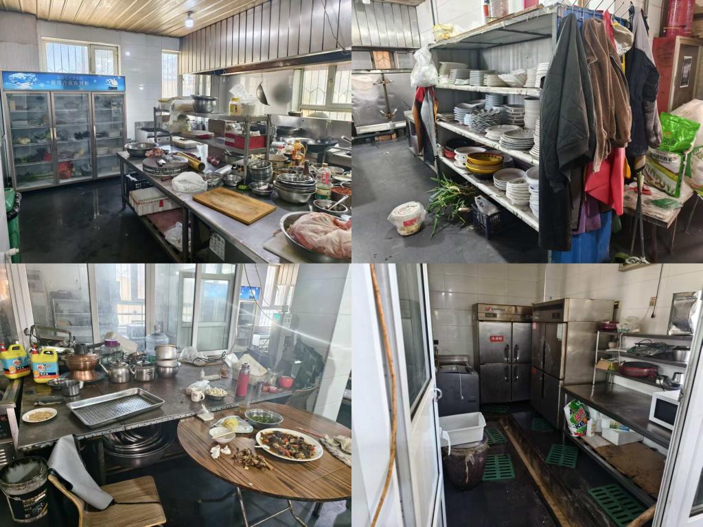 整改情况:1、及时打扫后厨环境卫生;2、厨具未使用时归位收纳;3、及时清理厨余垃圾。