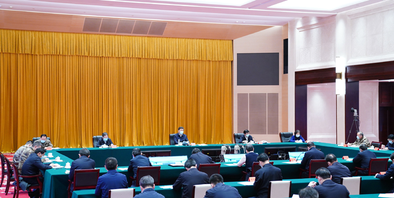 3月10日,中共中央总书记、国家主席、中央军委主席习近平专门赴湖北省武汉市考察新冠肺炎疫情防控工作。这是实地考察结束后,习近平主持召开会议,听取中央指导组、湖北省委和省政府关于疫情防控工作汇报,并发表重要讲话。新华社记者 谢环驰 摄