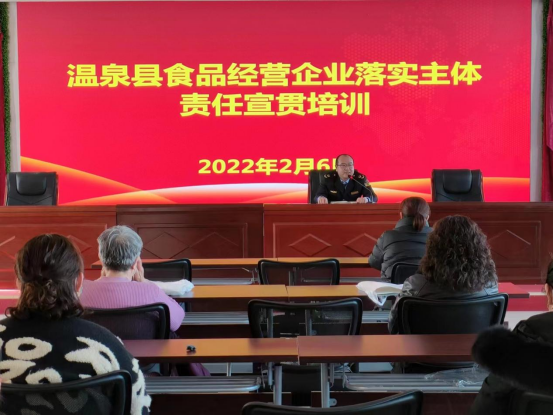 为加强和规范对食品生产经营企业的监督管理,督促食品生产经营者落实主体责任,提高食品生产经营监管能力和水平,保证食品安全生产监管工作顺利进行,近日,温泉县市场监督管理局对各乡镇场食品生产经营单位360余人进行集中培训,此次培训的主体是对食品生产监管人员、食品小作坊核准(备案)人员、餐饮服务单位负责人、安全员及微小食品销售经营者。
