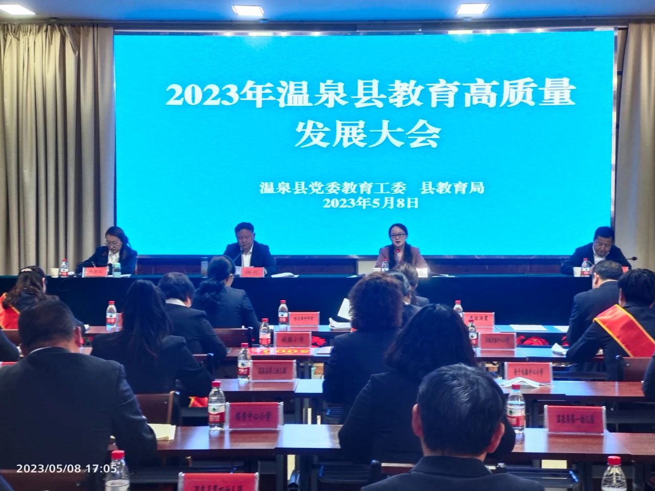 为进一步贯彻落实自治区、自治州《关于新时代新疆教育高质量发展的意见》的文件精神,推进温泉县教育高质量发展,5月8日,温泉县召开2023年教育高质量发展大会。县党政分管领导,教育局班子成员,各中小学校、幼儿园书记、校长(园长),优秀教育工作者、优秀教师代表50余人参加会议。