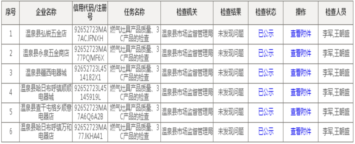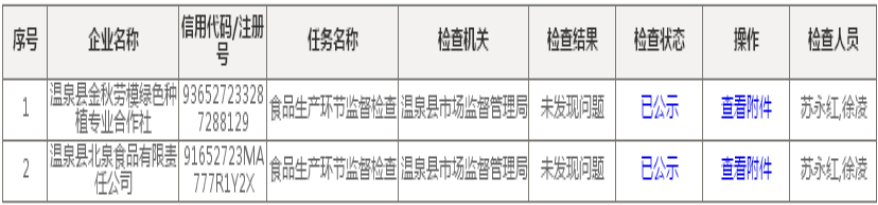 1、温泉县市场监督管理局关于食品生产环节监督检查结果公示