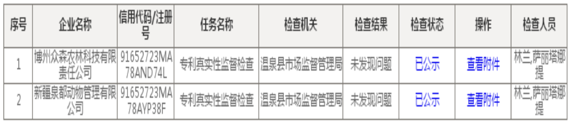 5、温泉县市场监督管理局关于专利真实性的监督检查结果公示