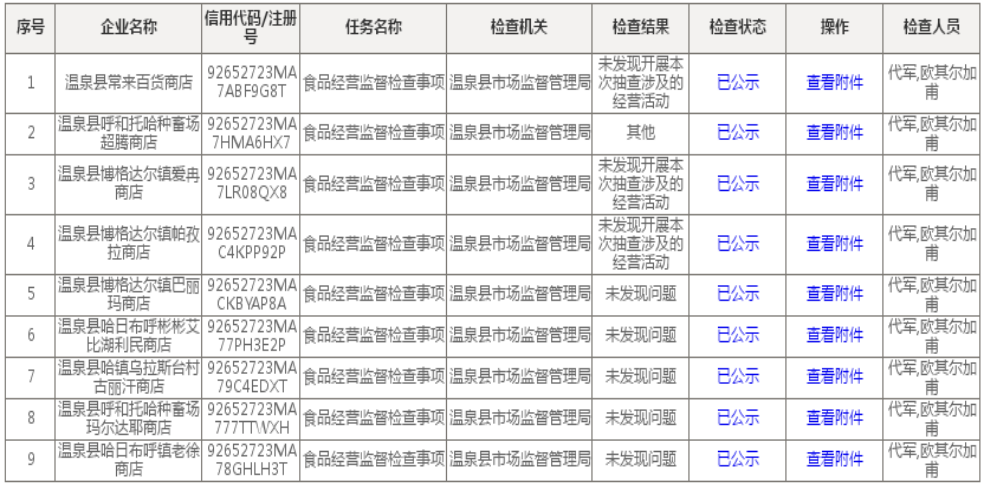 2、温泉县市场监督管理局关于食品经营环节监督检查结果公示