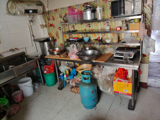 上榜理由:后堂卫生脏乱差;食品摆放混乱,生熟未分开;索票索证记录不全。