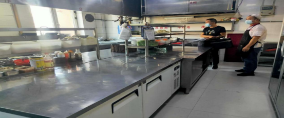 上榜理由:1.后堂卫生干净整洁;2.食品分类摆放;3.落实公勺公筷;4.按要求穿工作服;5.严格落实疫情防控要求隔位就餐。